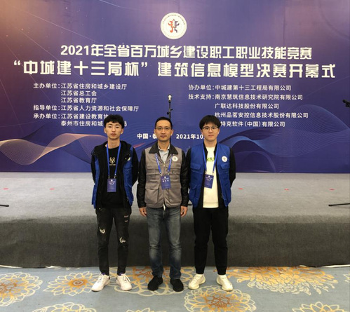 10月28日至29日,由江苏省住房和城乡建设厅、江苏省总工会、江苏省教育厅主办的2021年全省百万城乡建设职工职业技能竞赛“中城建十三局杯”建筑信息模型决赛在泰州举行。BBIN宝盈集团造价1905班闵熙昊、建设1901班虎创业同学获得全省员工组团队第三名的好成绩。 本次比赛是全省建设行业的劳动技能大比武,全省12支职工代表队和36支本专科院校员工代表队同台竞技,竞赛内容包括BIM理论知识与技能操作两项,排名前二十的选手,将被授予相应荣誉称号。 本次比赛8月中旬开始备赛,在疫情形势严峻复杂的时候,接到这个不可能完成的任务,闫志刚、王鹏、王逸菲三位老师克服疫情的影响,创新指导形式,每天线上点对点指导,从技能培训、竞技心理全方位进行培训,最终夺得员工组团体第三名的好成绩。